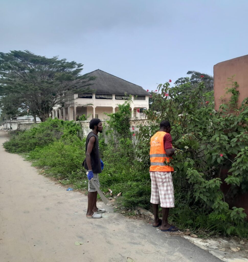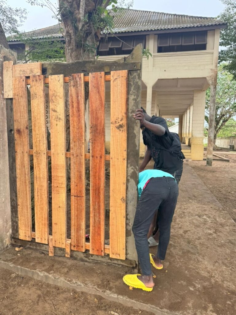 • De 9h45 à 12h45 : nettoyage des extérieurs de l’école, réparation des portails et sensibilisation des enfants à travers un jeu de ramassage du plastique, rendu possible grâce à l’installation de deux nouvelles poubelles.