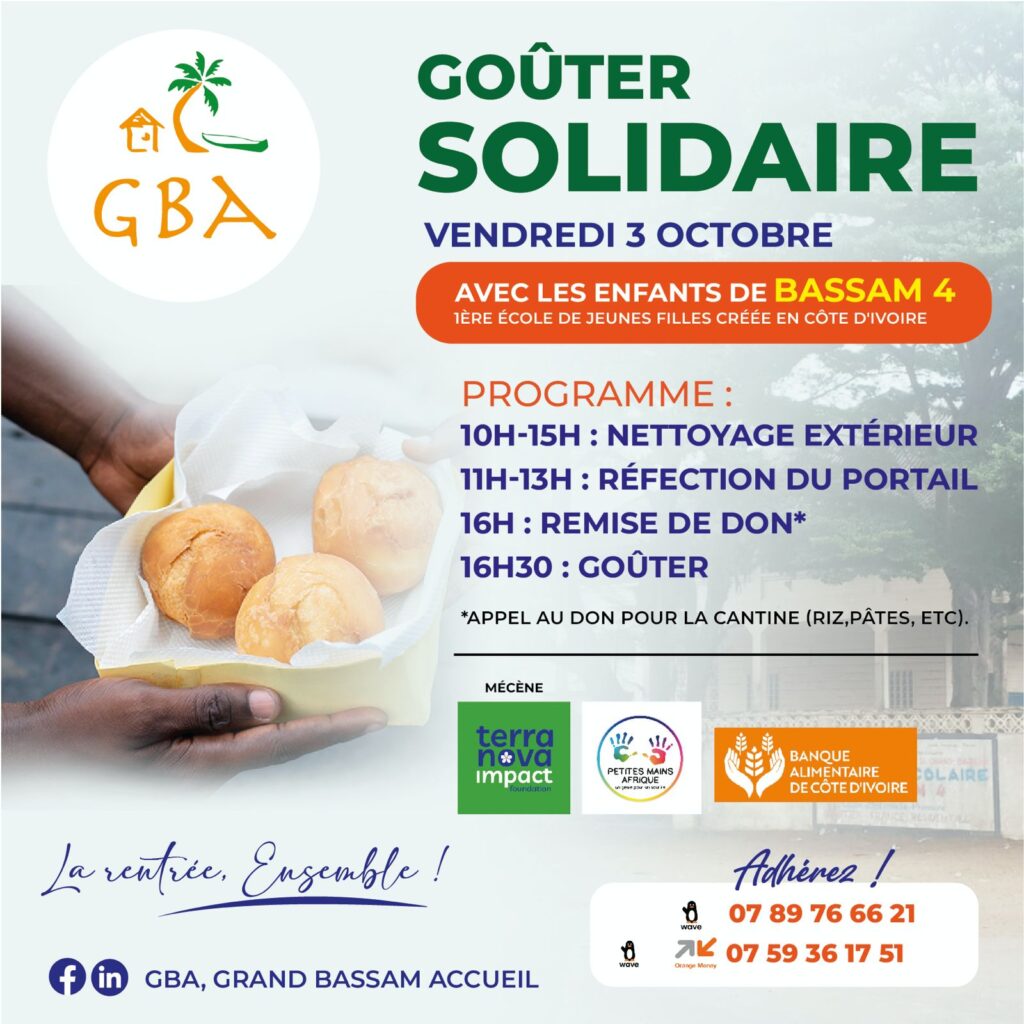 Le Goûter Solidaire de Bassam 4 n’est pas une initiative isolée. Il marque la première étape d’un projet de réhabilitation plus large qui s’étendra sur l’année 2026, avec pour ambition d’améliorer durablement le cadre d’apprentissage des élèves.